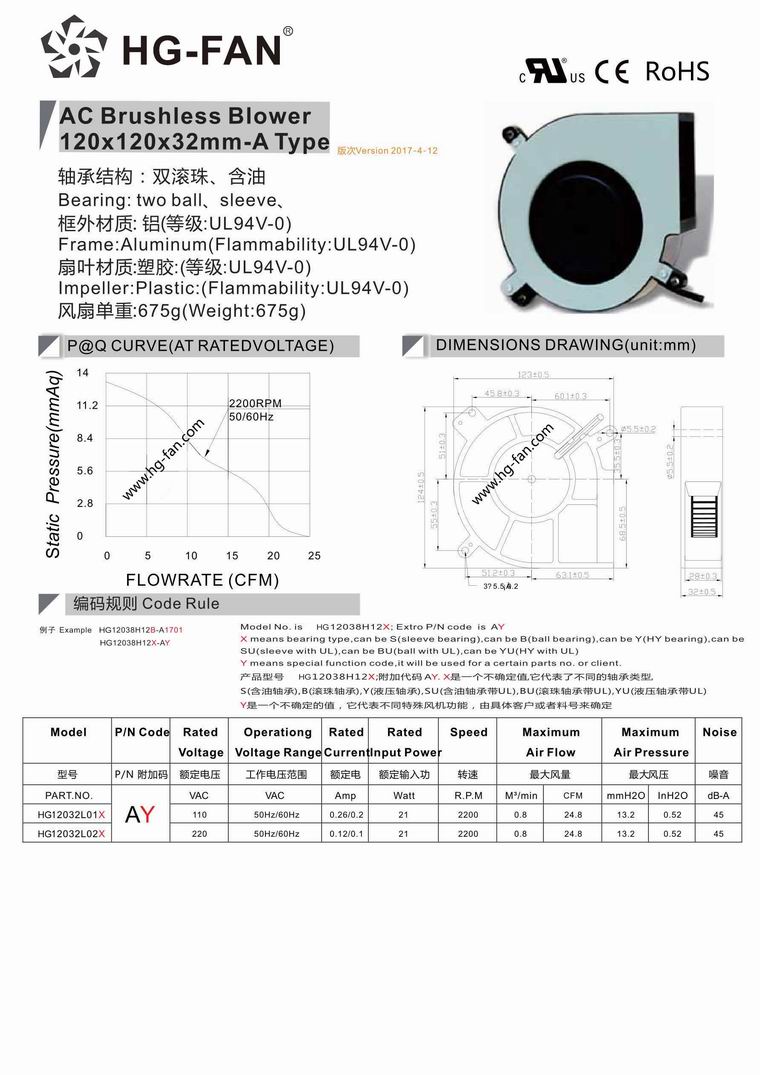 產品名稱:120x120x32mm 220V AC