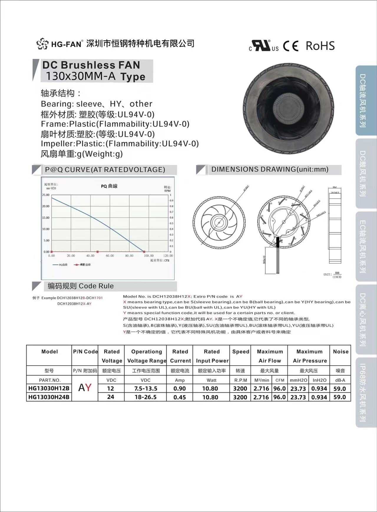 產品名稱:130X30MM離心風扇